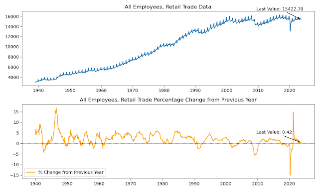 - The manufacturing sector saw relatively weak job growth, with employment increasing by only 0.73% from the previous year. This may be a sign that the manufacturing sector is facing some headwinds, such as the rising cost of raw materials and the ongoing supply chain disruptions.